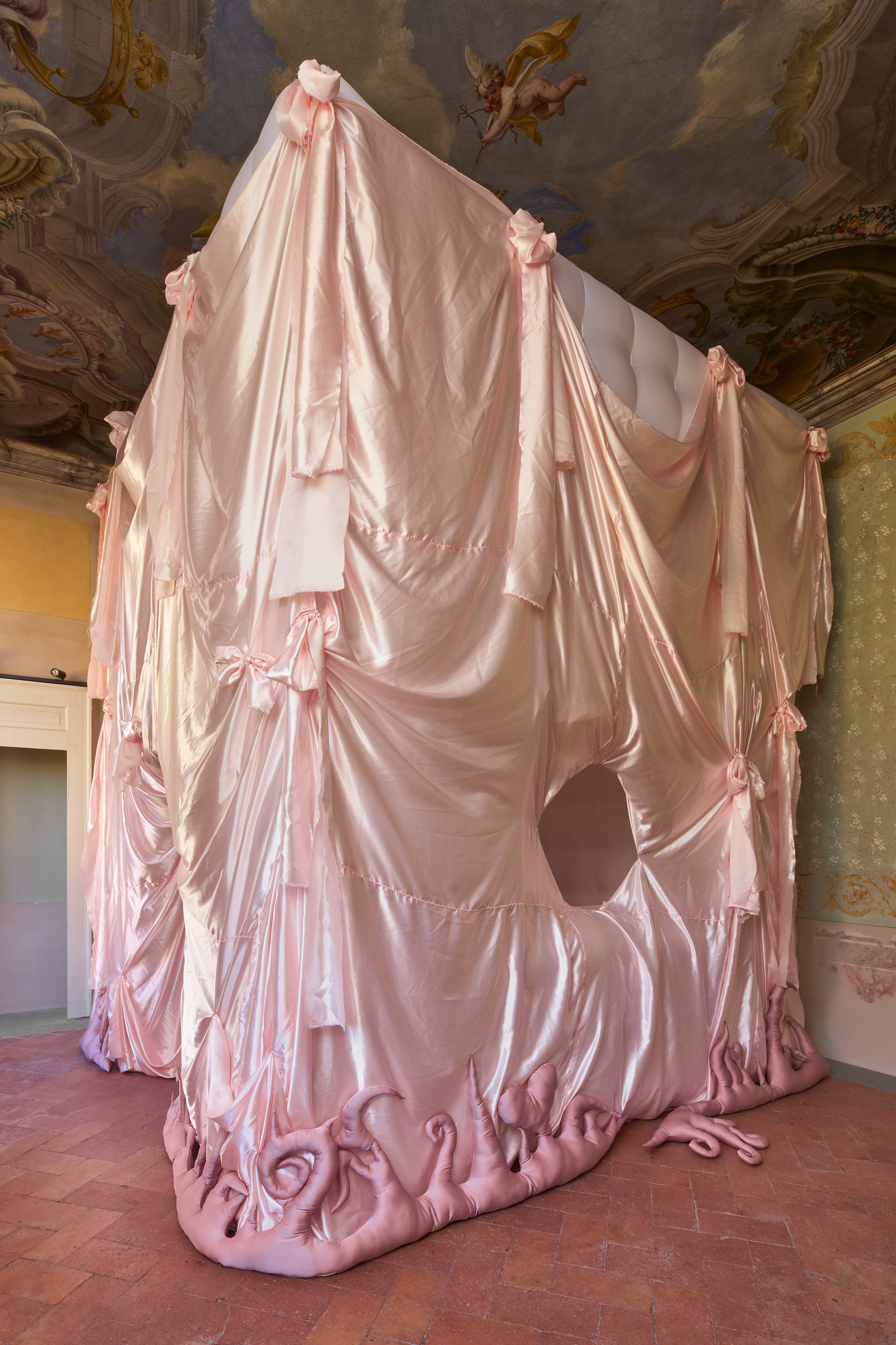 Nella prima sala troviamo “And to whomever you may seduce, I hope they soon realize your agony” (“E a chiunque tu possa sedurre, spero che presto comprendano la tua agonia”), installazione di Daniel Burley realizzata nei mesi di luglio e agosto 2022 in residenza.