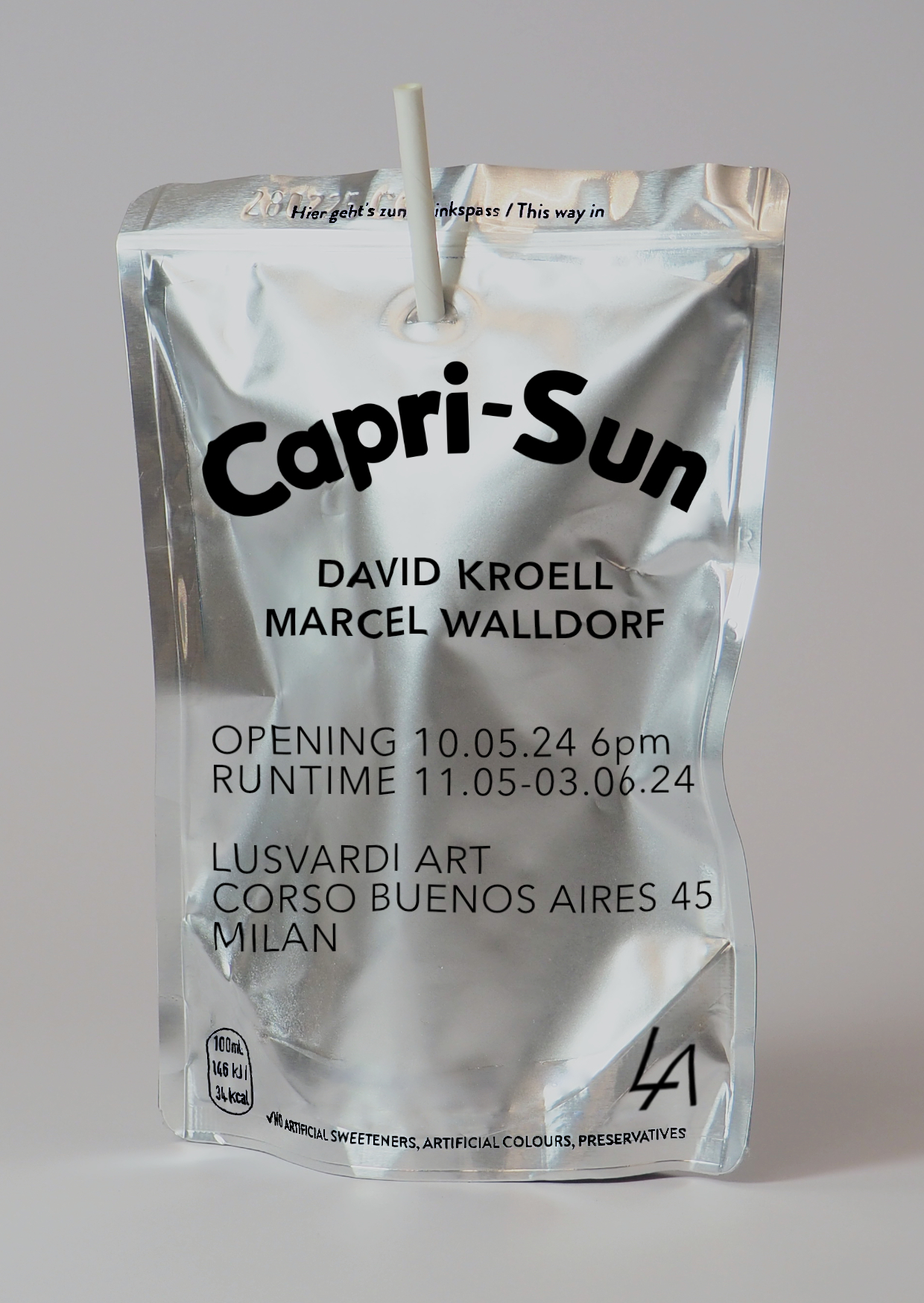 Venerdì 10 maggio, ore 18:00 Lusvardi Art inaugura Capri Sun, con David Kroell (1985, Xanten) e Marcel Walldorf (1983, Friedberg). Il percorso unisce esplorazioni spaziali, in cui il sole è co-creatore dell’opera, e un immaginario esopico, tra tassidermie, provocanti orinatoi e opere ambigue.