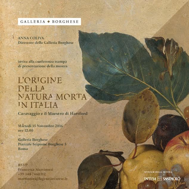 La Galleria Borghese di Roma prosegue nell’opera di studio e valorizzazione del proprio patrimonio artistico proponendo, dal 16 Novembre 2016 p.v. e in programmazione fino al 19 Febbraio 29017, un nuovo appuntamento espositivo dall’alto contenuto scientifico e culturale, che ha l’obiettivo di indagare le origini della natura morta italiana nel contesto romano della fine del XVI secolo, analizzando gli sviluppi successivi nell’ambito della pittura caravaggesca dei primi decenni del ‘600.