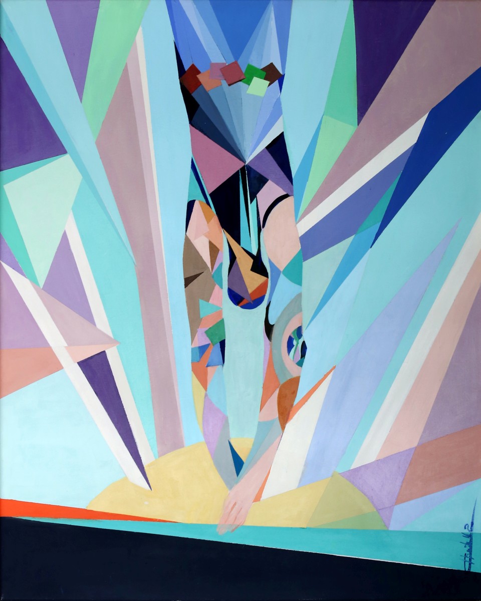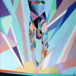I soggetti ci vengono raccontati attraverso spirali e linee dinamiche dal richiamo futurista. Le campiture definite e taglienti sembrano disposte come in un collage, ed hanno un effetto cromatico del tutto innovativo. In tal modo l’artista crea narrazioni e soggetti caratteristici per le forme geometriche minime, che fanno della sua produzione un unicum nel panorama artistico contemporaneo.