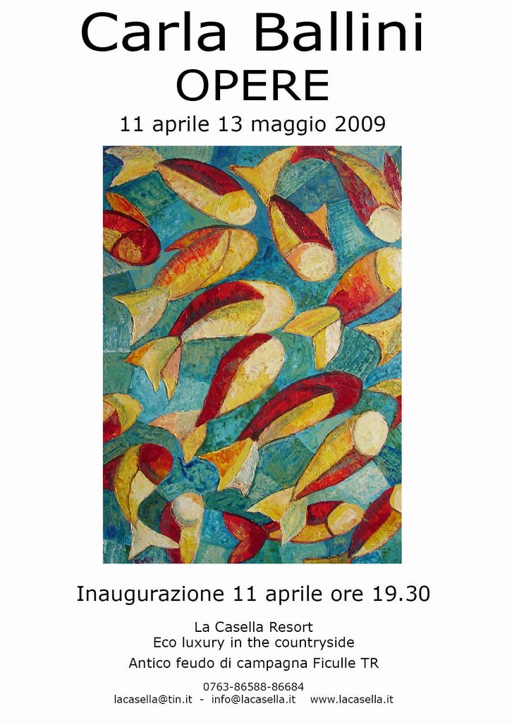 Prosegue con un altro appuntamento il fortunato binomio tra arte contemporanea e lo splendido Resort La Casella di Luciano e Mattia Nenna a Ficulle di Terni. Il 11 aprile 2009 alle ore 19.30 Associazione Contemporanea inaugurerà all’interno dell’agriturismo la personale di Carla Ballini. Le opere di quest’artista, molto vicine alla dimensione astratta, sono intrise di grande sensibilità poetica e di tonalità ricche di luce e di energia. La pittrice fiorentina esprime l’amore per la sua terra attraverso panorami e paesaggi che vivono di luce, bellezza e tanto colore. Le tele esposte si presentano come fresche trasposizioni di una suggestione cromatica espressa ora con toni accesi, ora con atmosfere dolci e pacate. La sua pittura, volta a considerare la natura nella sua grandiosità e nel suo splendore, trova ispirazione nel contatto diretto con la realtà e si manifesta con sincerità di espressione. La mostra, a cura di Loredana Bucchi, si propone di portare le opere di un’artista così affascinata dalla bellezza della creazione in un luogo naturalistico immerso nella tipica campagna umbra.