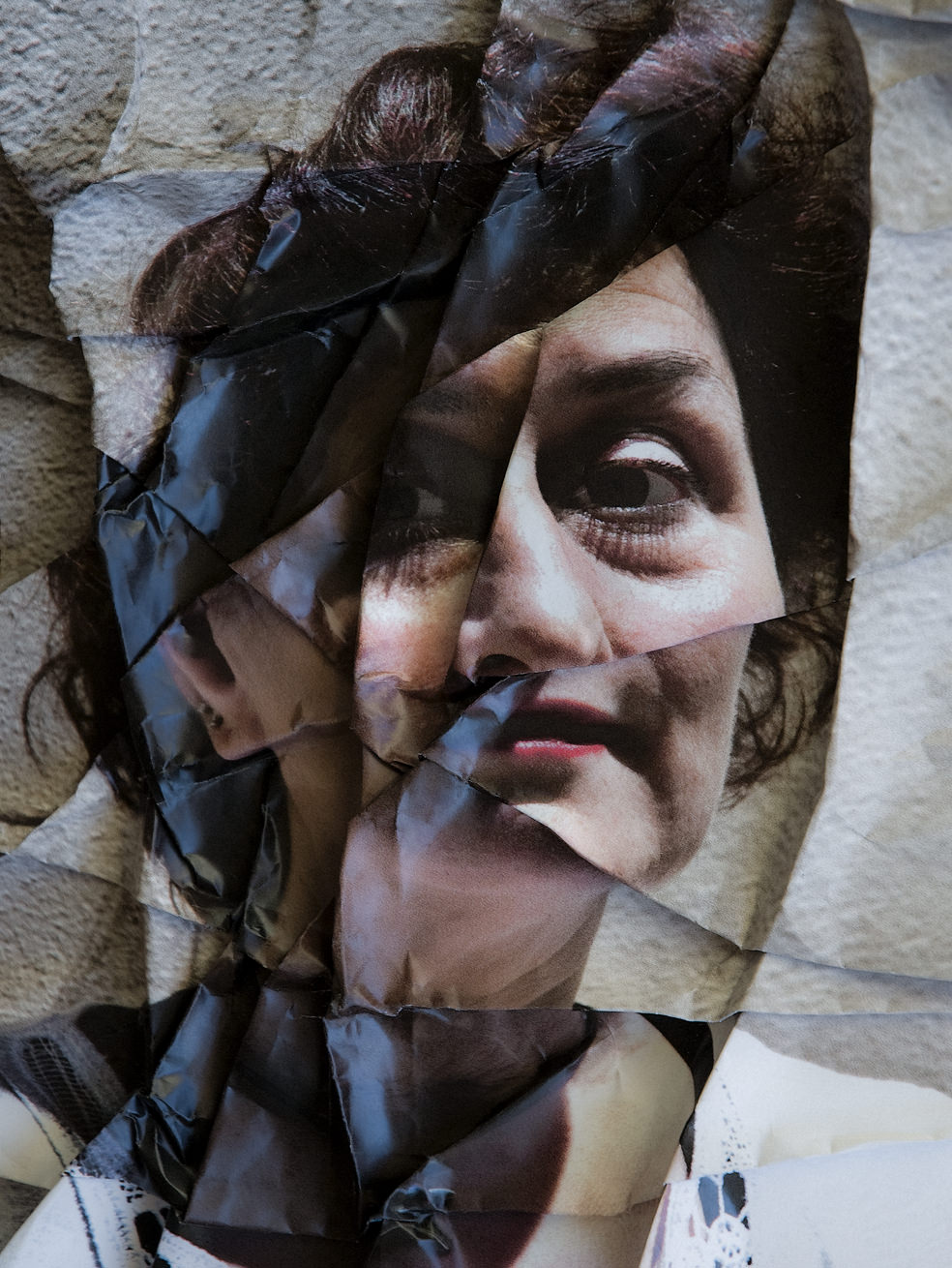 La scelta della fotografia come base di partenza dei lavori è motivata dalla capacità del mezzo, tra sguardo e registrazione, di rendere l’emozione dei visi, delle bocche e degli occhi, usando la luce. Non interessa in questo caso la fotografia in termini tecnici quanto la sua capacità di essere mezzo di raccordo ideale tra sguardo e sguardo, quello delle donne e quello di chi le guarda, incontro ulteriormente potenziato dalle pieghe che l’artista fa sulle immagini creando un disegno di ombre e luci tale da filtrare e drammatizzare le figure, ma anche un oggetto-ritratto che scaturisce appunto dall’offesa dei volti.