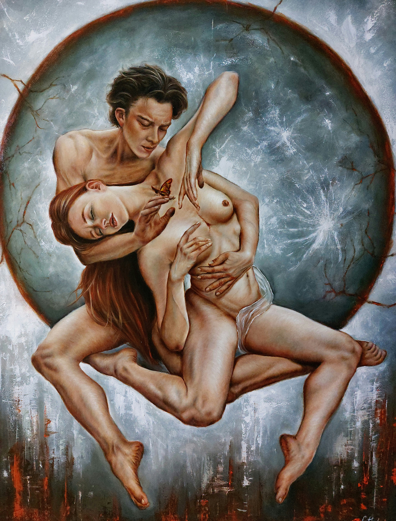 “… La tecnica sapiente dell’autrice conferisce alle opere un’immediata attrazione. Il corpo nudo o seminudo del soggetto sembra essere la sua ossessione in ogni sua opera. Una ricerca inesausta di posture corporali capaci di raccontare stati d’animo in movimento, l’emozione colta nella sua estensione, nella carne. II risultato è sorprendente. ….. Le forme di quei corpi vibrano fino a comporre un suono. Dalla vista all’udito, questo è il “senso” che l’osservatore utilizza mentre subisce la fascinazione delle immagini e il ritmo si insinua nell’intimità di chi guarda, quel luogo dove non ci sono forme perché sono tutte disciolte. È il luogo della follia, dell’emozione, che la Donna abita da sempre. È là che il logos non trova dimora. È il luogo dell’Amore. L’autrice ha dimorato in quel luogo ed ha raccontato a noi cosa ha vissuto, da cosa è stata attraversata…”