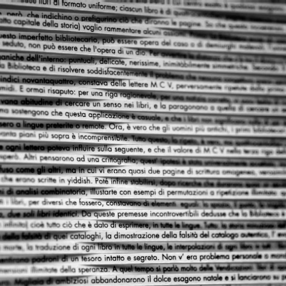 Di fatto anche Battisti muove da una «Notazione» di partenza, e cioè un foglio 34x34 che racchiude, composto in versione integrale usando caratteri piccoli, il racconto La biblioteca di Babele di Borges e su tale notazione compie 25 mirabolanti variazioni, mettendo in gioco, sul filo di una grafica originale e corroborante, suggestioni, riferimenti, allusioni, passaggi contenuti nel testo dello scrittore argentino. […]