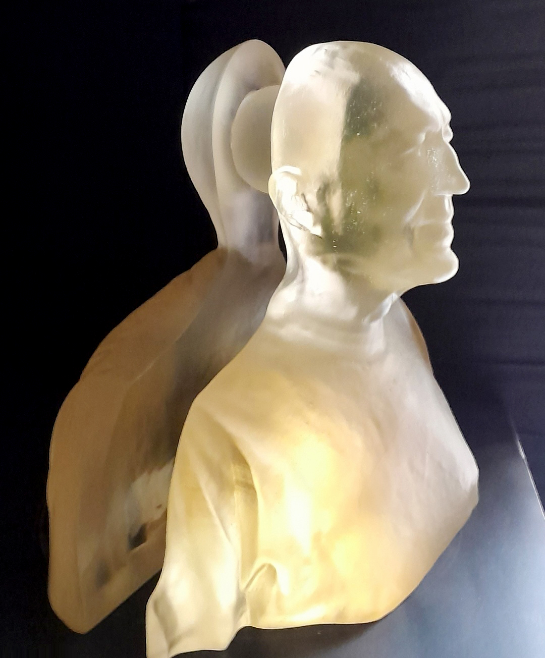 Per quanto riguarda l’altra area culturale di cui si è occupato l’artista, quella dei ‘Mezzi di comunicazione di massa’, l’interesse specifico è rappresentato da quel Medium universale che è la Rete, non tanto intesa come sistema di macchine ormai indispensabili nei processi produttivi, quanto strumento comunicativo di capillare diffusione, acceleratore di stili di vita, relazioni personali e sociali. Sulla scia del filosofo coreano Byng-Chul Han, l’artista non considera la Rete una tecnologia della liberazione, ma vuole metterne in evidenza il lato oscuro e ambivalente. In particolare l’artista si concentra sul tema dell’imperativo dell’Uguale, che prolifera nella comunità di simili alle quali si partecipa nei social network. L’artista ha preso chiaramente posizione in questo caso, con l’opera “Non omologabile”, solido platonico che pretende di contenere e anche di ridurre tutte le ‘versioni’ dell’artista stesso, come in un pacco qualunque che trasporta merce fatta in serie, da consumare. Altro tema, quello della cancellazione dell’’Altro, non idealizzato e nemmeno identificato con il diverso, che è una categoria restrittiva dell’Altro. ‘Altro’, quindi, inteso come alterità e negatività. La falsa coscienza dell’autenticità le rifugge perché la mettono provocatoriamente in crisi, quando invece consentono di definire una propria individualità in modo non banale. Il filosofo coreano e l’artista auspicano un cambiamento dell’interiorità, quindi una società a venire che potrebbe chiamarsi una società dell’ascolto e dell’attenzione, contro il brusio e la distrazione narcisistica. Emblematica, a questo proposito, l’opera manifesto “Selfie”, della mostra personale ‘L’espulsione dell’’altro’, alla quale vengono contrapposti gli Altri dimenticati, in tutte le loro più varie declinazioni. Si potrebbe intravvedere, da parte dell’artista, la proposta di una nuova vita in comune, in cui l’unicità della vita autentica di ciascuno, rapportandosi all’’Altro, potrebbe fronteggiare la corrosione dello spazio politico, traducendo in ‘Vita activa’’ il proprio sguardo interrogativo e critico. (Hannah Arendt) Rimanendo sempre in quest’area di interesse dei mezzi di comunicazione di massa, un altro lato oscuro e preoccupante, a cui è sensibile l’artista, è quello della Trasparenza. Infatti l’opera principe della mostra personale ‘L’espulsione dell’altro’ è denominata: “La trasparenza nel Panottico digitale”. Il Panopticon è un carcere ideale progettato nel 1791 da J. Bentham per rispondere, secondo i principi dell’Utilitarismo, alle nuove esigenze di controllo sociale, durante la prima Rivoluzione Industriale. I carcerati, in questo massiccio e articolato edificio, sono sorvegliati da una specie di Argo Panoptes della mitologia greca, senza che possano capire in quale momento il famigerato guardiano li osserva e per questo auto-docilizzati. Il filosofo Faucault vede il Panopticon come il paradigma della moderna società capitalistica: Web e social hanno realizzato la forma perfetta di sorveglianza, pervasiva e la cui responsabilità non è facilmente identificabile, da cui nessuno, per di più, vuole fuggire o evadere, per le connesse ricompense psicologiche. L’opera realizzata, oltre a materializzare questa trasparenza a cui si è soggetti, nell’immagine tridimensionale dell’artista stesso, mette in evidenza, attraverso l’’esibizione del simbolo dell’intimità, un altro aspetto patologico che è andato sviluppandosi in relazione ad essa: il depauperamento della privacy. Come rileva infatti il filosofo Galimberti, nel suo libro ‘L’ospite inquietante’, in una società consumistica, dove le merci per essere prese in considerazione devono essere pubblicizzate, il costume, soprattutto dei giovani, viene contagiato e amplificato dalla disponibilità capillare della rete di comunicazione. L’identità viene scambiata con la pubblicità dell’immagine e l’esserci con l’apparire, al punto che per uscire dall’anonimato viene messa in mostra anche l’interiorità, scambiando per sincerità e quindi per virtù quella che invece è spudoratezza. Il fenomeno produce conformismo e omologazione totale della società, oltre altri aspetti degenerativi per l’equilibrio delle menti dei più giovani e indifesi. L’artista, provocando con la sua opera un senso di intrusività e di conseguente insopportabilità, vuole rendere gli osservatori avvertiti dei pericoli nascosti nell’abuso di tecnologie tanto diffuse quanto avvincenti per i loro aspetti di indiscutibile utilità. Il veloce excursus fin qui condotto aspira a configurarsi come un’esperienza di verità, come si diceva all’inizio. Cioè come un tentativo di comprensione, originato consapevolmente da un proprio orizzonte di senso, che si sporge verso l’Altro alla ricerca del suo Essere, pur nel parziale e perdurante Nascondimento che lo contraddistingue (Heidegger - Gadamer). L’artista si è offerto gentilmente a questo tentativo di comprensione. Lo ringrazio anche per l’arricchimento personale che ne è conseguito.