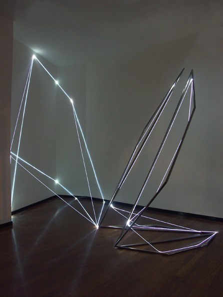 sue sculture in acciaio inox e fibre ottiche o plexiglass e fibre