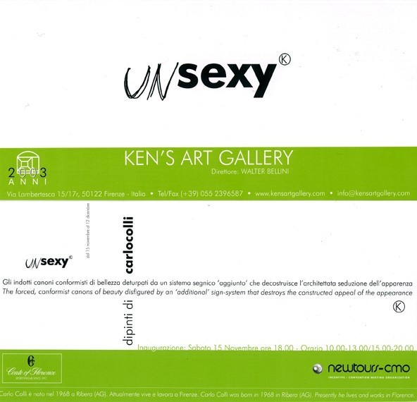 Carlo Colli sperimenta le composizioni e le tecniche della figurazione, e inventa, infine, un’azione radicale che smitizza il senso prestabilito dell’arte da cavalletto. Intorno al rapporto tra l’artista e la sua opera si snoda il suo ultimo lavoro: un’indagine sulle traslazioni semantiche del gesto pittorico e sull’apertura della tela verso attese anche imprevedibili (oltre gli squarci di Lucio Fontana). Il corpo straripante di fisicità, il corpo lascivo, il corpo terreno e femminile, il corpo centro dei metalinguaggi visivi, il corpo maltrattato e contaminato, il corpo. Il corpo è sempre protagonista indiscusso della ricerca pittorica di Carlo Colli.