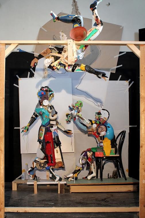 Come in altre sue installazioni già realizzate, dove la fascinazione dell’immagine si rinnova tramite l’inaspettato creando uno stato di sublime smarrimento, Carlo De Meo costruisce un’opera essenziale e cruda fatta essenzialmente di ombra e luce. L’intera immagine si sviluppa in un’ombra retroproiettata su uno schermo damascato: il fruitore vedrà l’ombra realistica di quattro figure come se dall’altra parte quattro attori, in una sorta di fermo immagine, stiano mettendo in scena la rappresentazione. Ma sarà guardando oltre lo schermo che lo spettatore comprenderà con sorpresa la vera natura dell’opera: un insieme apparentemente informe e caotico di oggetti cui la somma delle loro ombre costruisce l’immagine comunicante. Ombra che diventa quindi l'espressione (non la conseguenza) bidimensionale di una massa.