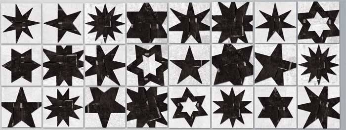 In occasione della mostra al MLAC, nella sala al piano superiore, sarà esposta una grande opera appositamente concepita per lo spazio espositivo. Questa installazione site specific è dedicata a Roma e ne riproduce, in porzioni distinte, la mappa assemblata di diverse parti del centro storico della città viste da una determinata altezza. Durante l’inaugurazione sarà inoltre presentata dall’artista mariée duchampiana, un’azione concertata con un attore di strada, un mimo che offrirà ad un pubblico esclusivamente femminile, fette di torta al cioccolato disposte a forma di stella.