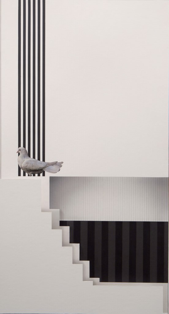 Sono le loro opere che disorientano e attraggono allo stesso tempo, sorprendono e nello stesso tempo restano enigmatiche. Si vorrebbe collocarle in un tendenza, si vorrebbe trovare ascendenze, ma queste, se ci sono, sono molto vaghe e per certi versi irrilevanti. Eppure hanno coerenza, seguono un ductus chiaro. Alcuni animali, una colomba, un toro, un elefante, due cervi, una giraffa, alcune sculture classiche, il Marco Aurelio del Campidoglio, la Nike di Samotracia, una Venere ellenistica, tutti resi col pastello, a grana dura e a grana morbida, con grande perizia, fatti a regola d’arte ( vantano un papà falegname ed il lavoro artigianale fatto a regola d’arte), plasticamente resi con un disegno impeccabile, con passaggi chiaroscurali delicati e solidi allo stesso tempo, tutti soggetti contestualizzati in superfici e spazi neutri, organizzati geometricamente in fondali che rimandano alla Bauhaus, alle geometrie neoplastiche olandesi, alcune collocate su piedistalli come monumenti. Non hanno espressioni particolari, sono forme oggettive nel loro porsi in quello spazio, ogni volta nuovo, in campiture grigie, bianche o nere; forme plastiche che diventano visioni metafisiche, di una neometafisica che rifugge dalla storia, così come rifugge dal quotidiano, dal tempo pur necessitando della luce fisica di cui le campiture hanno bisogno, per occhi che devono guardare e ritornare a guardare per percepirne le lenticolari variazioni dell’incarnato delle materie con cui sono fatte.