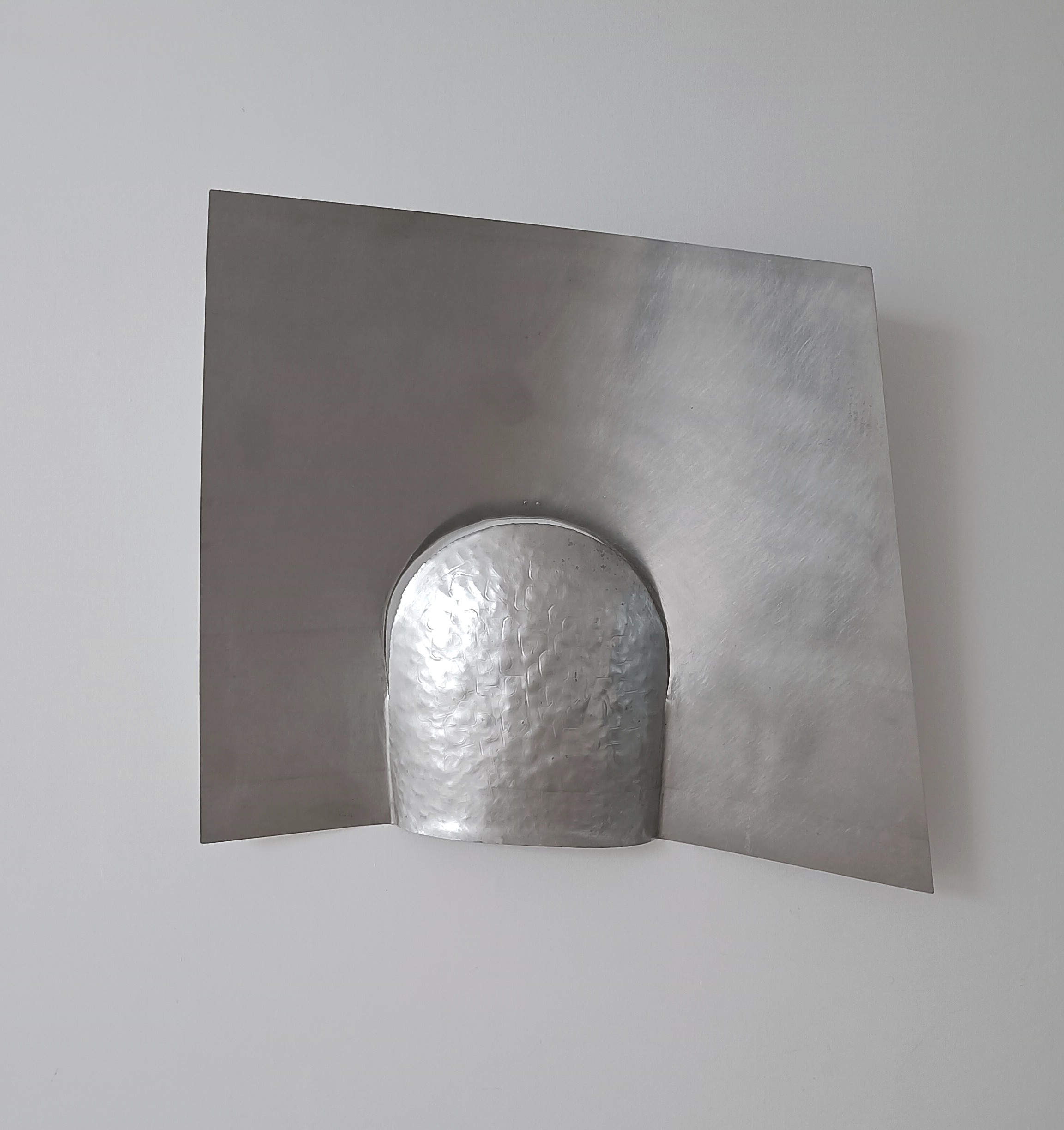 Carlo Lorenzetti ha scelto per questa mostra una serie di suoi lavori in alluminio, che mettono in luce il lato leggero e lirico della sua produzione artistica. Non sono solo i titoli di queste opere a suggerirlo (Monte Aurale, Cattedrale Lunare, Curve del Cielo, Vento Sospeso, Incastra Nuvola), ma anche il dialogo con lo spazio e la luce della galleria La Nube di Oort, che partecipano alla percezione e alla definizione delle opere stesse. Trasformando il metallo in una materia malleabile per la realizzazione delle sue opere, l’artista indaga l’espressività dello spazio stesso, riesce a catturare brandelli della sua natura impalpabile.
