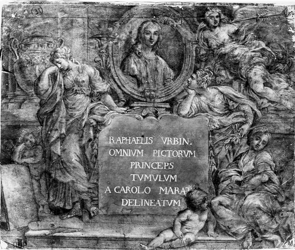 Ma fu a Roma che Maratti, seguendo anche in questo campo il magistero di Raffaello, diede vita ad un modello organizzativo unico del proprio studio finalizzato alla promozione di se stesso e della sua attività artistica. Aveva elaborato una complessa strategia che comprendeva la realizzazione di numerose repliche delle sue opere di maggior successo eseguite dai collaboratori a lui più vicini, la realizzazione di varianti autografe e la circolazione di stampe di riproduzione che facevano conoscere le sue creazioni ad un vasto pubblico di artisti e di appassionati.