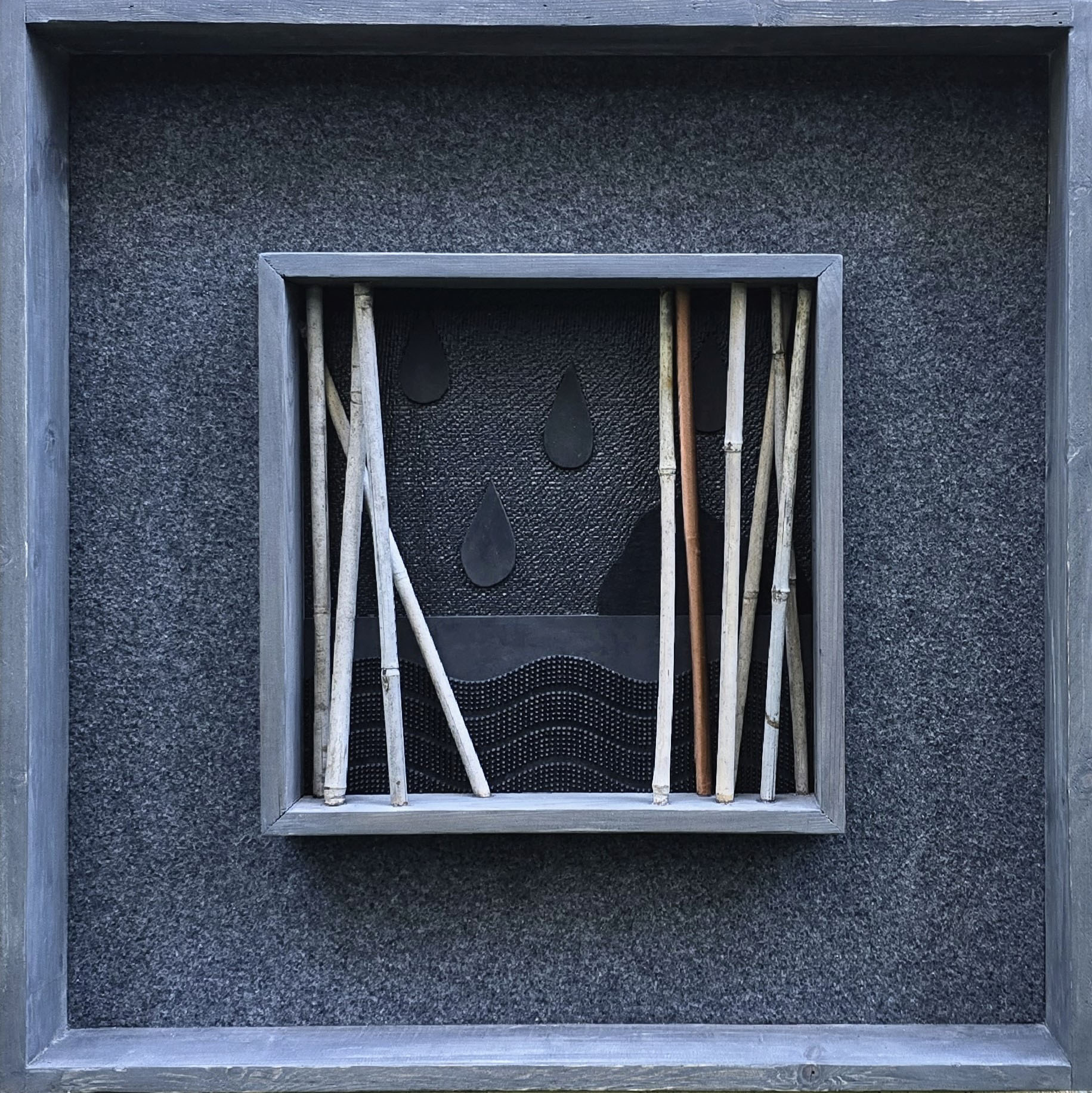 “Beyond Black” is a journey into the fundamental nature of material and form. His works are raw yet intentional, fragments that suggest presence without ever fully revealing it. They resonate with a deep, ancient energy. Wood, rubber, wool, fabric, and sand, materials that appear throughout his practice, become symbols of grounding and transformation.