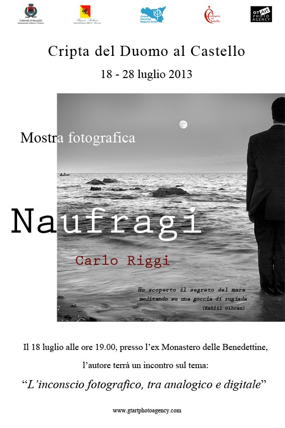 Giovedì 18 Luglio, alle 19.00, il Castello di Milazzo ospiterà “Naufragi”, mostra fotografica di Carlo Riggi, promossa dall’Assessorato alla Cultura del Comune di Milazzo, visitabile fino al 28 Luglio presso l’Oratorio del Duomo. In occasione dell’inaugurazione l’Artista terrà un incontro pubblico dal titolo “L’inconscio fotografico, tra analogico e digitale”.