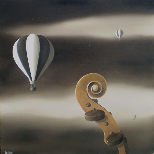 Come spiega infatti lo stesso artista, le opere della sua recente produzione sono accomunate da una scelta cromatica che va dal bruno Van Dyck alla terra di Siena, dalla terra d’ombra bruciata ai bitumi: tonalità calde che accolgono epifanie del quotidiano, sospese nel cielo o naufragate sulle rive del mare.