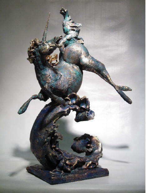 La sezione esposta nella Casa di Frossasco presenta circa venti opere tra le più rappresentative dell’artista: dalle donne guerriere, alle madri con i loro bambini, dalle coppie unite in un unico corpo a persone che si tengono per mano, per arrivare alle rappresentazioni di cavalli e cavalieri.