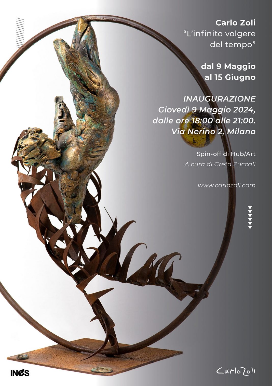 Carlo Zoli è protagonista a Milano con la personale “L’infinito volgere del tempo”, in programma dal 9 maggio al 15 giugno 2024 nello spin-off di HUB/ART in via Nerino 2, con la cura di Greta Zuccali e un testo critico di Luca Nannipieri.