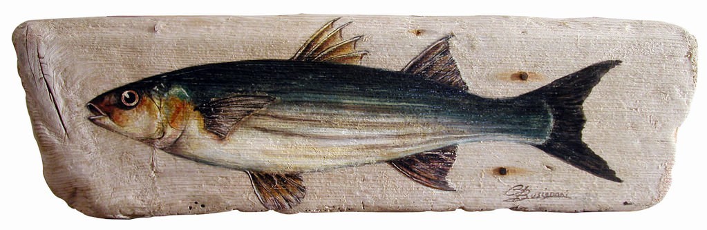 10 tavole di legno su cui appaiono altrettanti “ritratti” di pesci, ognuno con una propria tonalità emotiva e velato umorismo