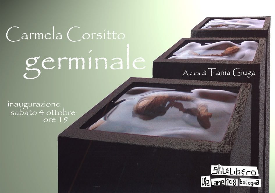 Sabato 4 ottobre 2003 alle ore 19, si terrà presso il concept bar Stile libero, via Lame 108 – Bologna – il secondo appuntamento del ciclo Migrazioni : dislocazioni geografiche e azioni contemporanee, sei piccole mostre italiane dall’ovest chiamando il sud ; con le istallazioni di Carmela Corsitto che presenterà: Germinale .