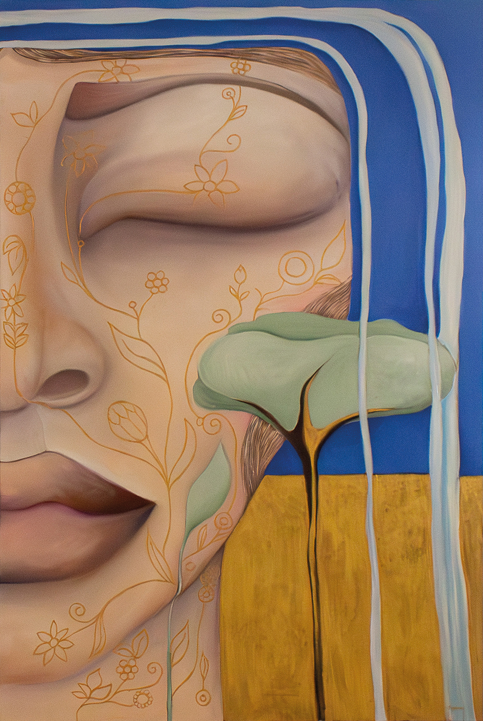 La mostra si apre con un portale che si schiude all’universale, poi, attraverso le corrispondenze tra i dipinti, il visitatore è invitato a cogliere e comprendere come gli sguardi non parlano, ma accennano, accolgono, cantano e urlano in silenzio il dolore sopito, ascoltato, percepito.