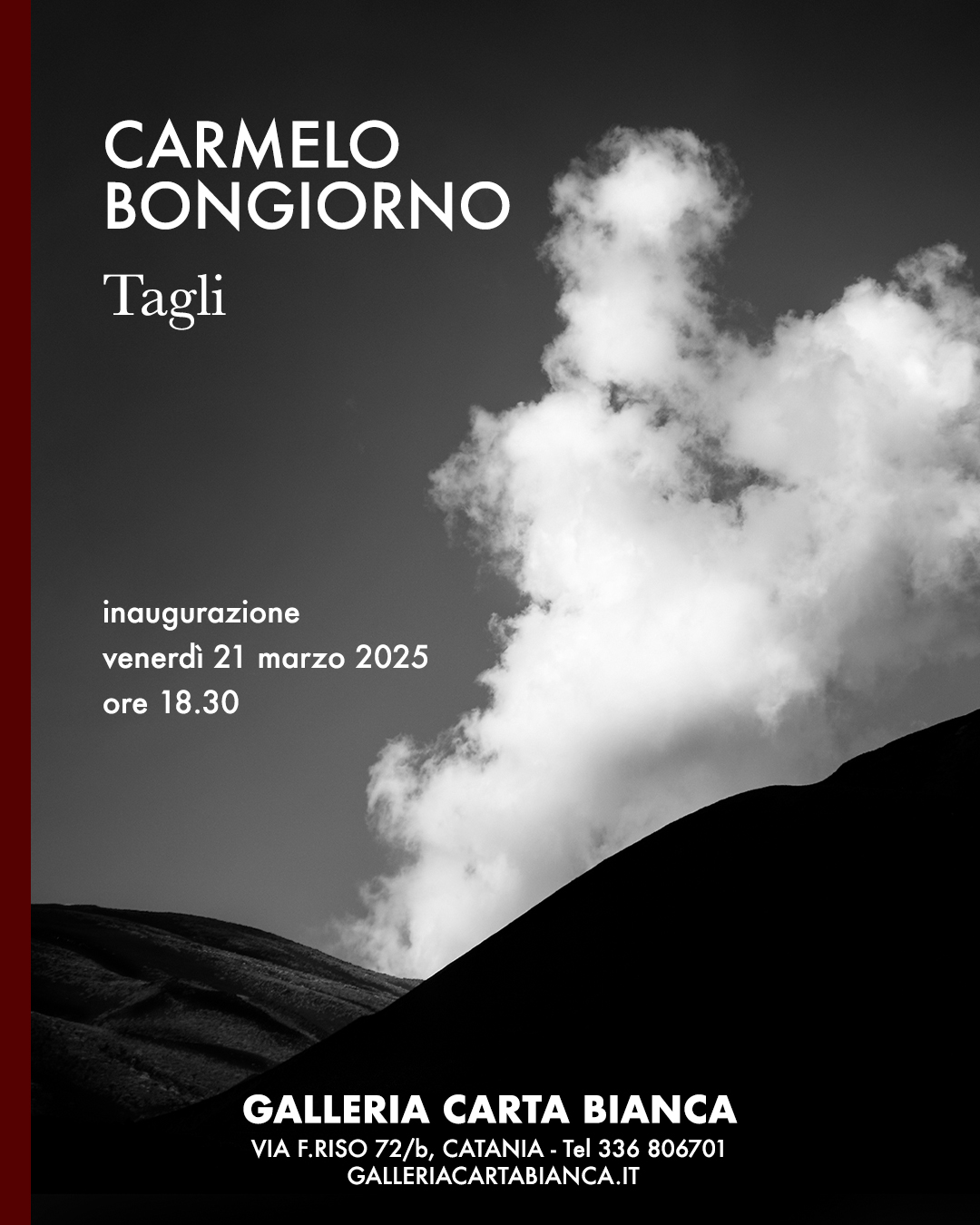 Venerdì 21 marzo alle ore 18.30 sarà inaugurata da Carta Bianca (via Francesco Riso, 72/b Catania) la terza mostra personale, dopo quelle realizzate nel1999 e nel 2011, di Carmelo Bongiorno, dal titolo ”Tagli”. L’artista catanese, riconosciuto come uno dei più grandi fotografi contemporanei, esporrà in galleria le opere più significative di un lavoro che raccoglie 36 dittici di grande formato, realizzate in molti anni di ricerca. Una profonda riflessione sui temi del disagio e della inquietudine. Il volume TAGLI, particolarmente curato nella stampa e in distribuzione nazionale, è l’ottava monografia dell’autore e vede testi di Mario Cresci, di Franco Battiato e dello stesso Carmelo Bongiorno.