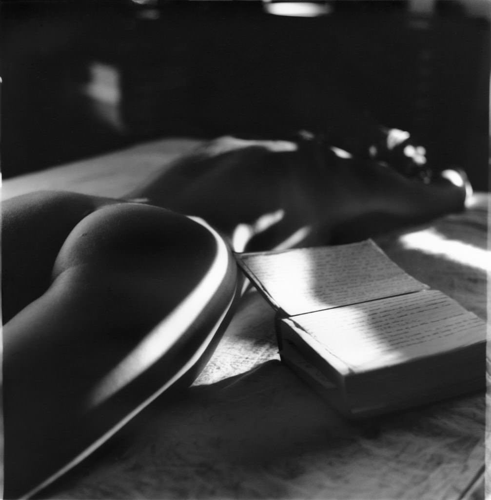 Frammenti di seni, di cosce candide, di mani, di neri peli pubici, sotto il suo sguardo ravvicinato e quasi tattile si trasformano in apparizioni visionarie e misteriose, avvolte in una luce del Sud che qua e là abbacina nella sua purezza, ma sa anche creare magiche e dense zone di oscurità simili ad angoli segreti. L’uso del mosso e dello sfocato, delicato e mai eccessivo, da cui emergono alcuni punti a fuoco, sottolinea ulteriormente, grazie a tale movimento oscillatorio e ondeggiante della visione, che la sua fotografia sa avvicinarsi al respiro dei corpi per accoglierne l’insondabile mistero.