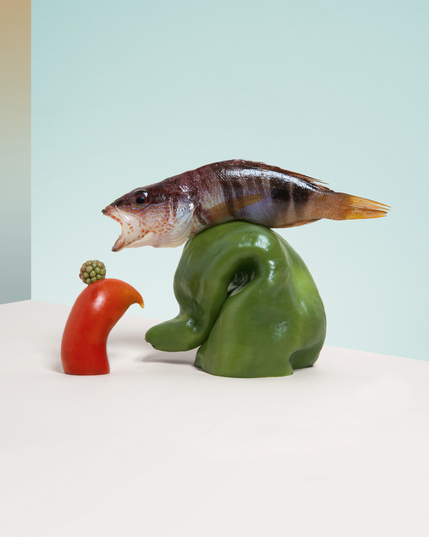 Cosa,ma soprattutto come,mangeremo: Plastici,asciutti, alieni,sono cibi pensati per il piacere della vista. In un immaginario menu metafisico. Carmen Mitrotta propone alimenti di cui coglie gli accostamenti inusuali,li immerge in ambienti asettici e li accompagna con sue piccole sculture. R.Mutti