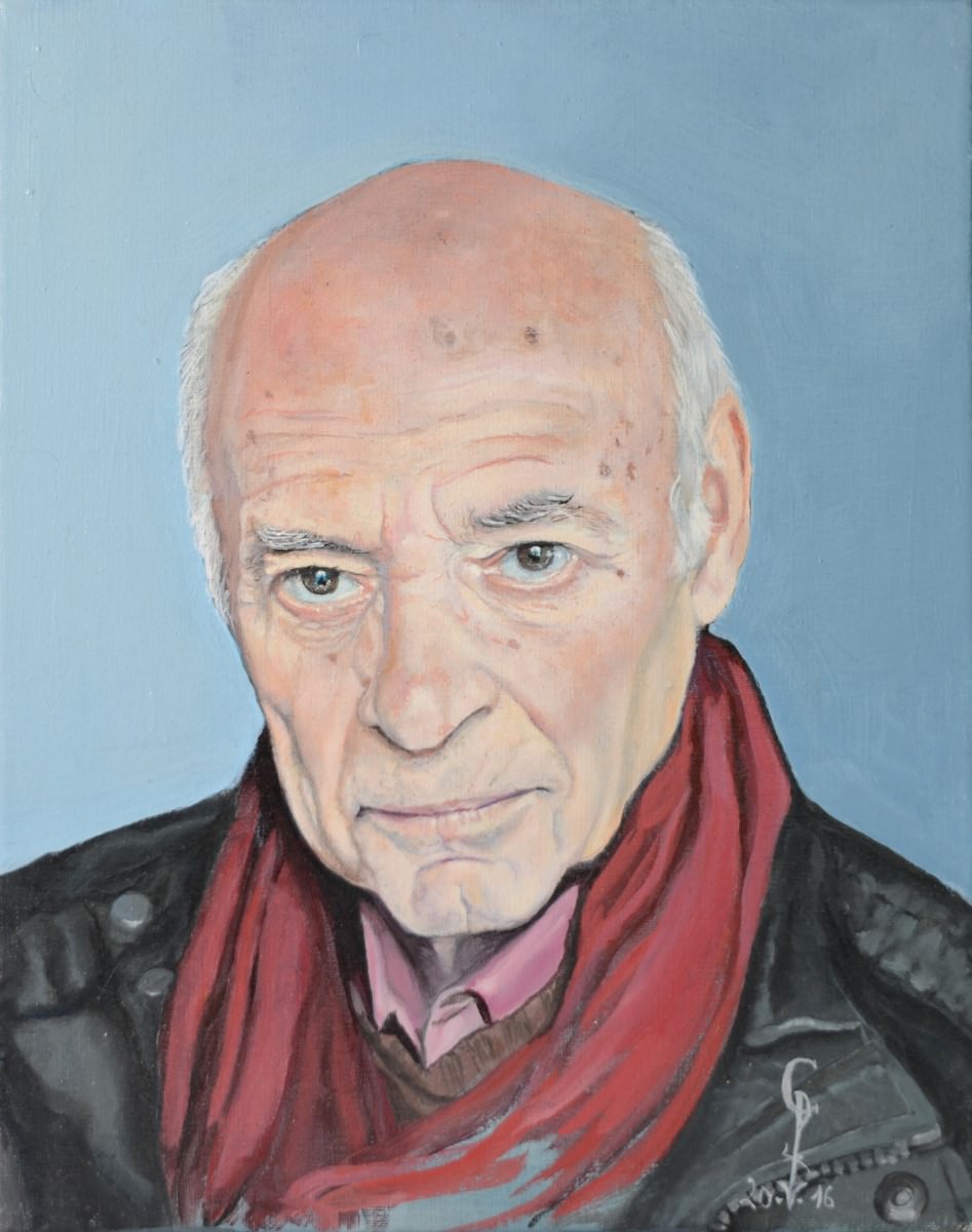 La formazione dell’artista avviene, infatti, attraverso la meticolosa copia dei maestri del passato. Ogni opera nasce da un disegno preparatorio, riportato direttamente sul fondo azzurro fiordaliso. Il colore ad olio viene quindi applicato per velature successive, a partire dagli occhi, nei quali si intravede l’anima della persona, in paziente attesa davanti allo sguardo del pittore.