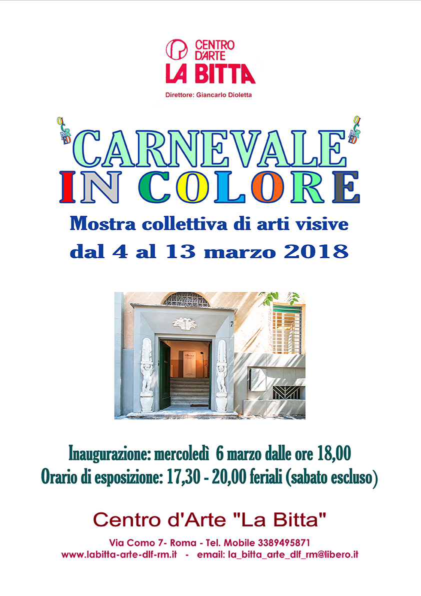 Mostra di arti visive “Carnevale In Colore” dal centro d’arte La Bitta. Con la mostra collettiva di arti visive “Carnevale In Colore” si mettono in evidenza, attraverso le opere artistiche, le immense varietà tonali di luce e colore.