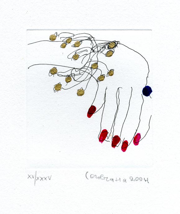 La mostra presenta una quarantina di grafiche originali dalla collezione di Franco Masoero, stampatore di tutta l’opera grafica di Carol Rama. Quello tra l’artista e lo stampatore è un dialogo speciale fatto di «complicità» e «premeditazioni delinquenziali», termini a cui ricorreva spesso Carol Rama quando raccogliendosi davanti alla lastra o sulle matrici preparate a «vernice molle» lasciava che la sua mano si unisse al segno in un gesto che rapiva gli istanti del tempo. Carol Rama si avvicina alla grafica intorno al 1993, dopo un piccolo approccio avvenuto 50 anni prima. Una tecnica che l’artista reinventa e muta seguendo il proprio demone. In pochi anni realizza 150 incisioni originali, spesso ritoccate a mano, o integrando l’incisione con oggetti e materiali di natura diversa (smalto per unghie, pelli, camere d’aria), ricreando così quel piccolo mondo intimo fatto di infinite ripetizioni. Tra le opere in mostra ricordiamo: Le Parche (rare prove della prima serie di incisioni), la cartella Sprovieri (Seduzioni, Macelleria, Il Rovescio di Achille), la serie La Mucca Pazza, Le Malelingue, La mano bianca (con haiku del poeta Sanguineti). In mostra sarà presente il catalogo, pubblicato per l’occasione, con una conversazione con lo stampatore Franco Masoero.