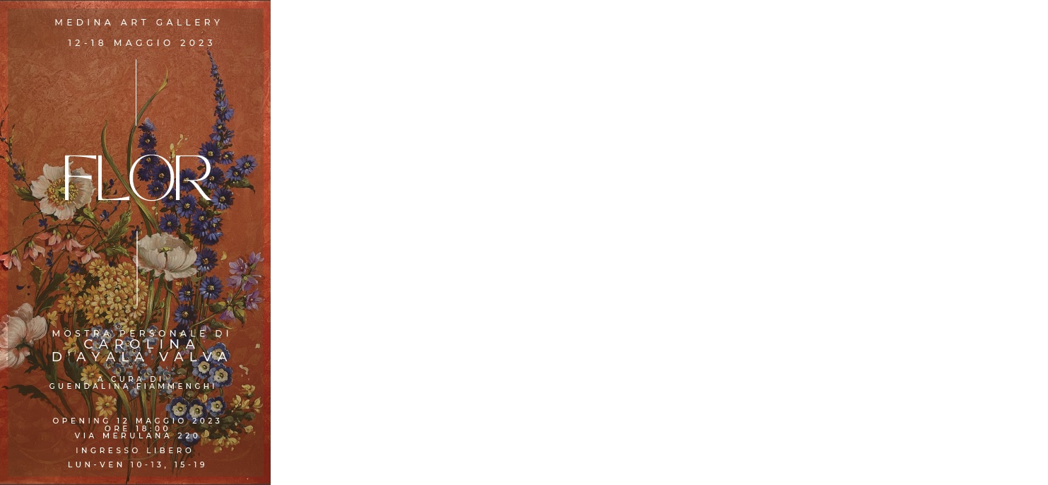 Dal 12 al 18 maggio 2023 Medina Art Gallery presenta “Flor”, mostra personale di Carolina d’Ayala Valva a cura di Guendalina Fiammenghi nella galleria di Via Merulana 220 a Roma.