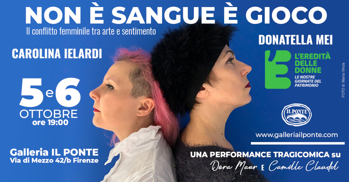La galleria Il Ponte, in occasione della seconda edizione del Festival “L’Eredità delle donne a Firenze”, diretto artisticamente da Serena Dandini, promuove l’evento Non è sangue è gioco – performance tragicomica di e con Donatella Mei e Carolina Ielardi.