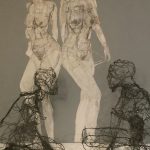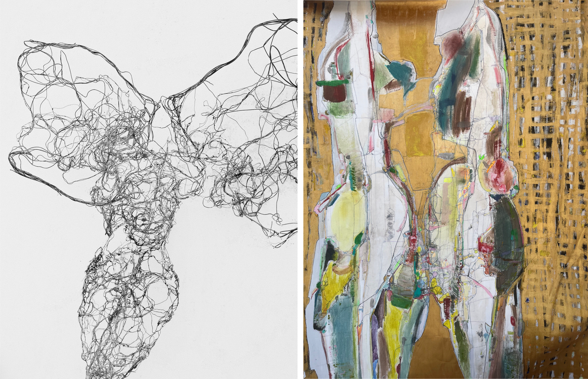 I am not bound by my body, scrive il curatore, è una collaborazione tra Caroline e Joanna, il cui focus è l’esplorazione del senso del sé attraverso i corpi in cui siamo nati e nel percorso che siamo destinati a seguire. Ci sono diverse somiglianze tra il lavoro a penna fine di Joanna e quello in filo metallico di Caroline, anche se gli stili e i mezzi risultano opposti; è evidente infatti la rappresentazione dell'energia che scorre attraverso il corpo pittorico dell’una e quello scultoreo dell’altra che ricongiunge entrambe in punti vitali di intensa emozione. Così il lavoro delle due artiste scorre tra spazi e linee, che si tratti di filo o inchiostro; questa fascinazione energetica, che riscontriamo nelle loro opere, deriva dalla loro identità genetica e dall'innata consapevolezza che sono molto più del loro sé fisico e senziente. D’altronde, ci sono opere che trovano costantemente modi per esprimere sia l'energia maschile che quella femminile: lo yin e lo yang, le due energie polari presenti in tutto.