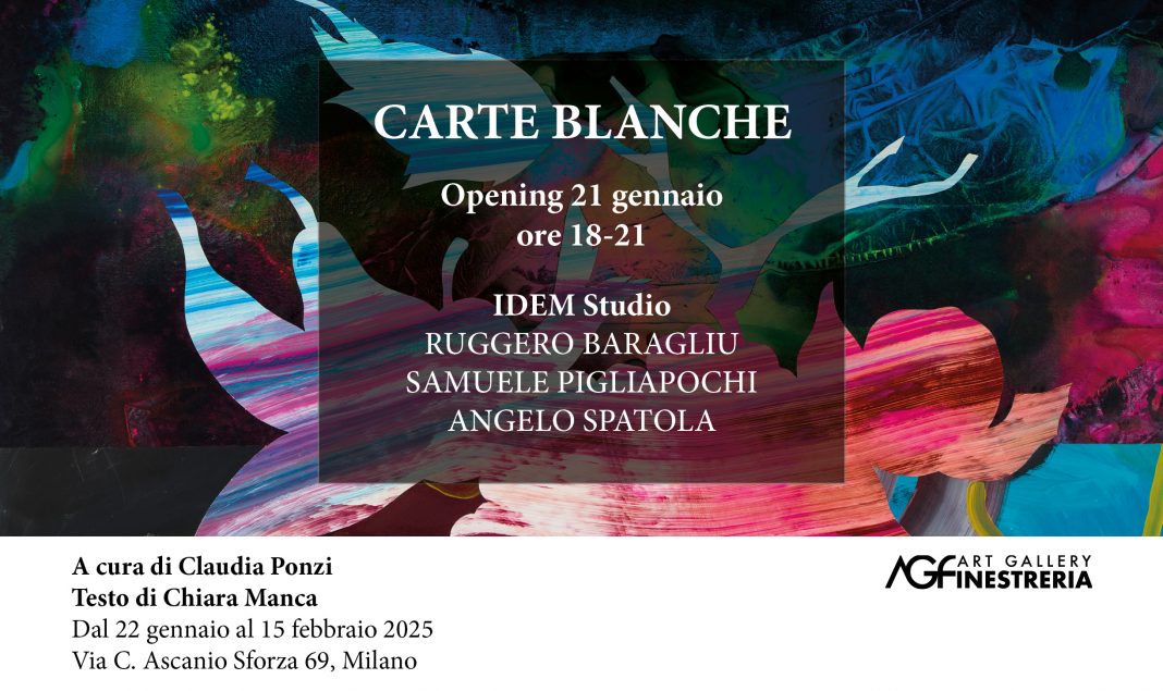 Il Menù Carte Blanche prevede tendenzialmente tre portate, a discrezione dello Chef, la mostra Carte Blan-che fa lo stesso: un trittico con medesimo soggetto, rappresenta varianti sul tema e porta l'osservatore ad approfondire ad ogni passo un sapore diverso.