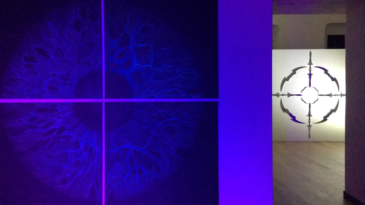 Le installazioni, presenti in mostra, fra le quali “New Quantum” sono riferibili alla continuità e all'unitarietà della natura riscontrabile nei principi che regolano le forme caotiche a varie scale di grandezza.