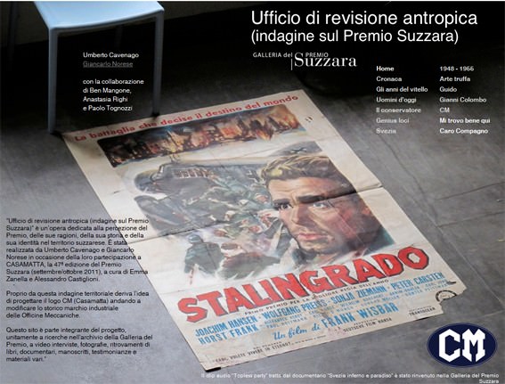 Ufficio di revisione antropica (indagine sul premio Suzzara) di Umberto Cavenago e Giancarlo Norese, è un’opera dedicata alla percezione del Premio, delle sue ragioni, della sua storia e della sua identità nel territorio suzzarese. Proprio da questa indagine territoriale deriva l'idea di progettare il logo CM (Casamatta) andando a modificare lo storico marchio industriale delle Officine Meccaniche. Gli artisti hanno vissuto per diversi giorni a Suzzara realizzando video interviste, fotografie, compiendo studi che hanno portato al ritrovamento di libri, documentari, manoscritti, testimonianze e materiale vario. Parte integrante del progetto è il sito che raccoglie tutta la documentazione.