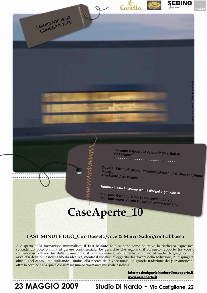 Il giorno 23 Maggio 2009, alla presenza degli artisti selezionati da CaseAperte ( Davide Pasquali, Bruno Pegoretti, Alessandro Merlanti, Paolo Maggi, Altin Furxhi, Aldo Popolo ) si inaugura una Mostra-Evento della durata di un'unica sera! “dalle 19.00 alle 00.00”
