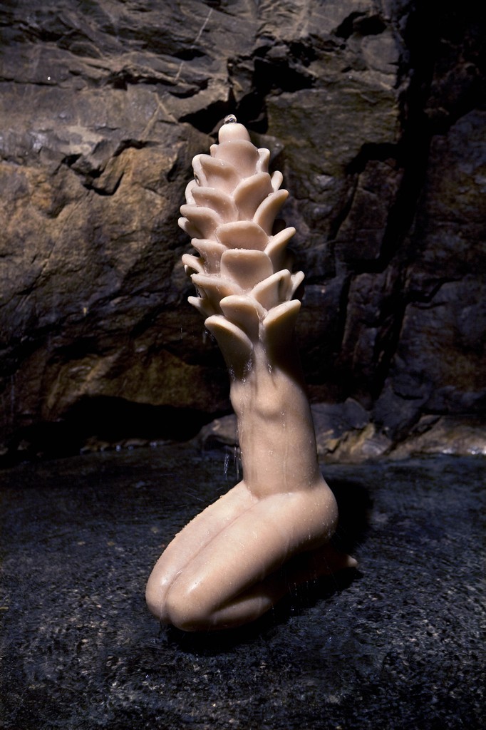 La scultura in marmo, figura mezza donna mezzo fiore, ospitata in un’antica cisterna