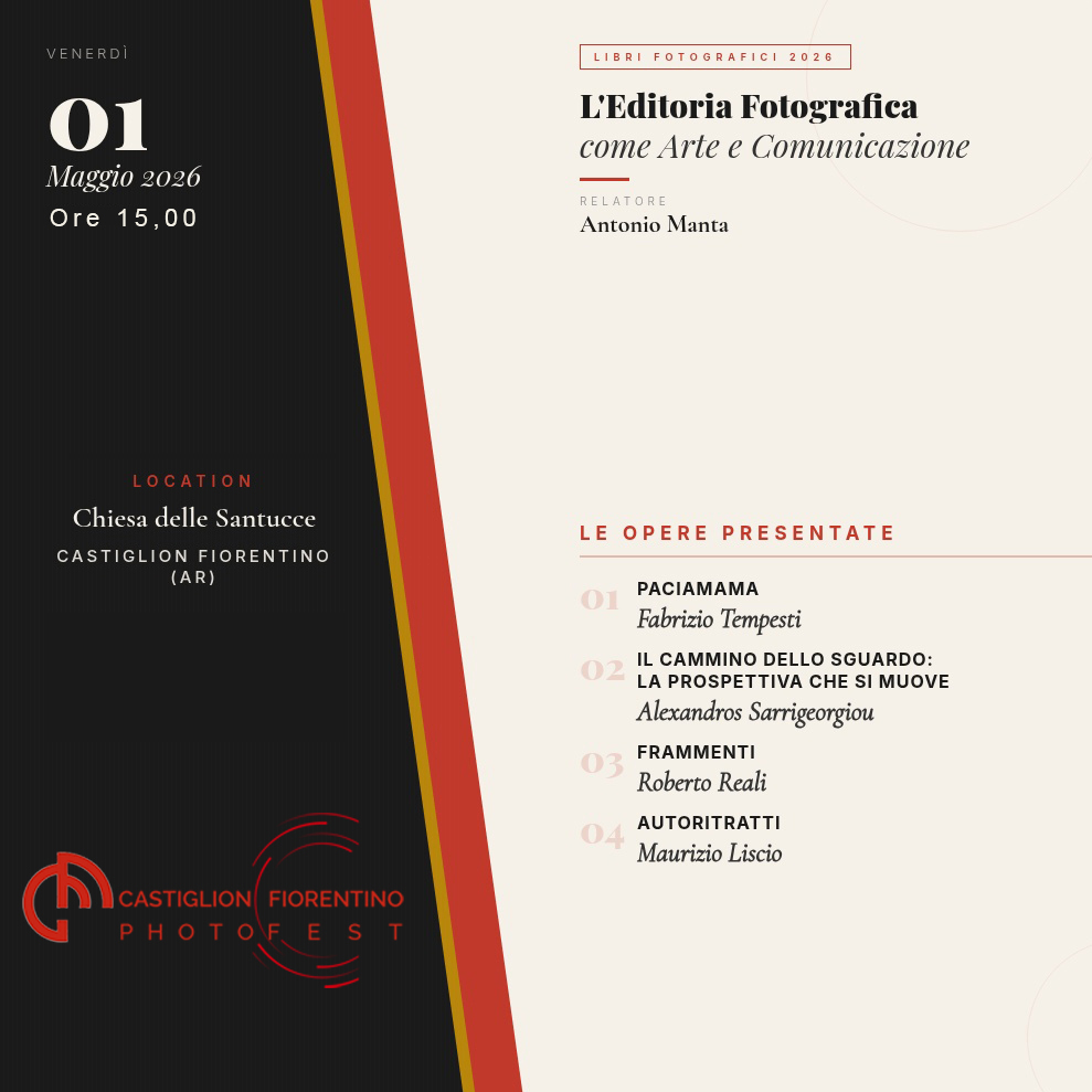 Dal 1 al 17 maggio 2026 si svolge la quinta edizione del Castiglion Fiorentino Photo Fest, evento dedicato alla fotografia contemporanea con mostra collettiva, incontri e workshop.