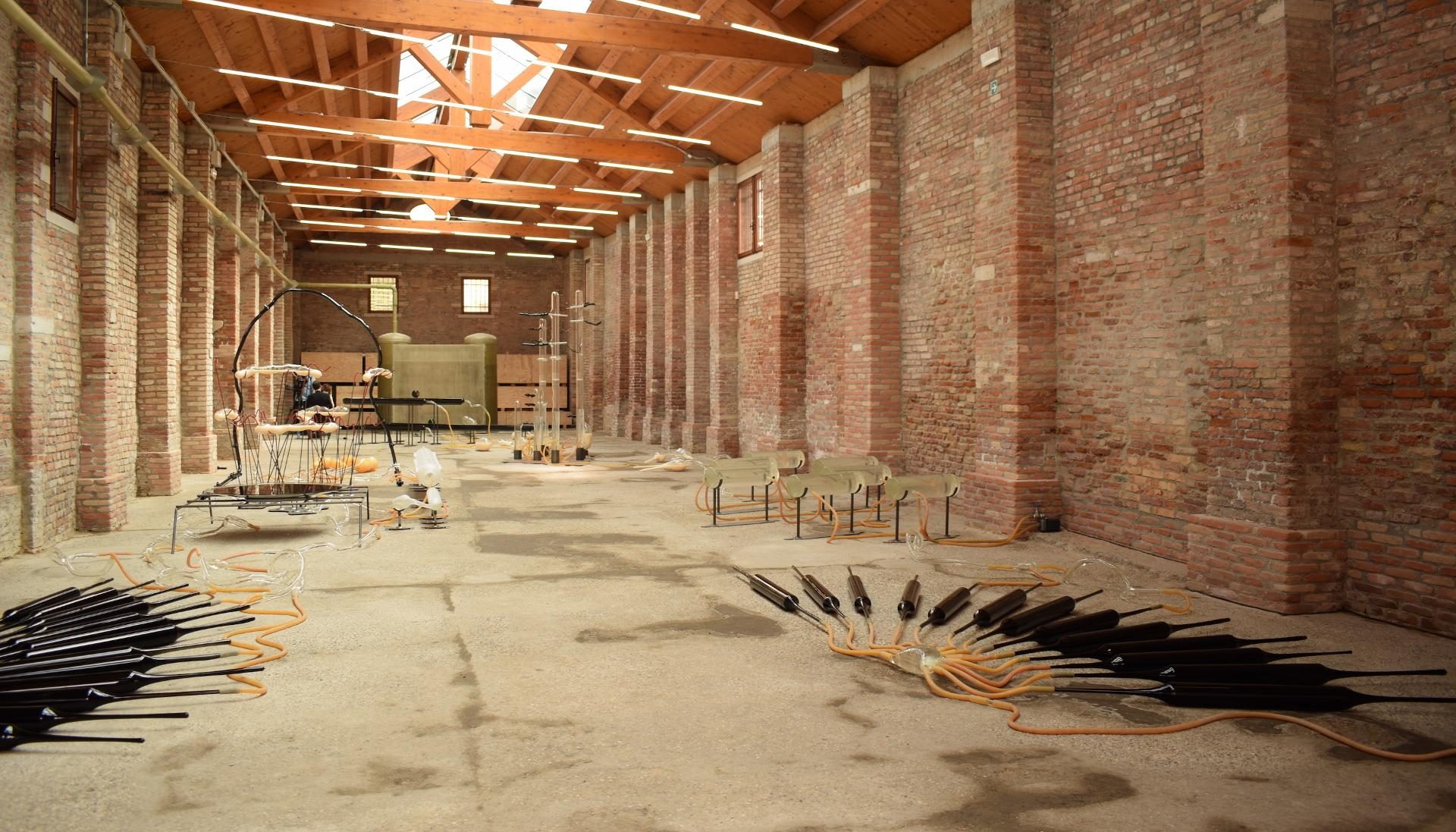 LLIM discreetly adheres to the canals and the glass tubes, connecting them, and, through its circulation, progressively assimilates the layers that make up the place. Without being able to distinguish cause from effect, or interior from exterior, in Venice LLIM pronounces itself like a Klein bottle: it is a situated manifestation of the viscous behavior of matter.