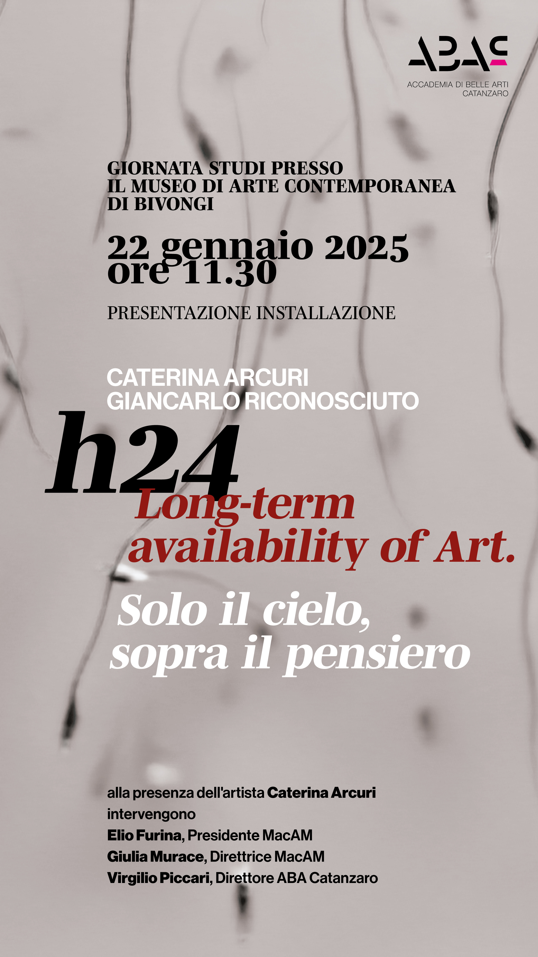 Il 2025 si apre per il MacAM con l’inaugurazione di un progetto artistico realizzato da Caterina Arcuri e Giancarlo Riconosciuto (†): H24 Long-term availability of Art. Solo il cielo, sopra il pensiero, installazione permanente per la facciata del Museo di Bivongi.