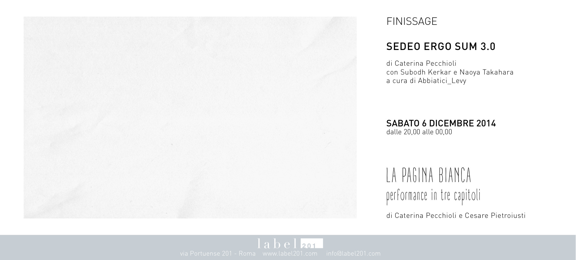 In occasione del finissage della mostra “Sedeo Ergo Sum 3.0” di Caterina Pecchioli con Subodh Kerkar e Naoya Takahara a cura di Abbiatici_Levy, Label201 presenta “LA PAGINA BIANCA, performance in tre capitoli” di Caterina Pecchioli e Cesare Pietroiusti