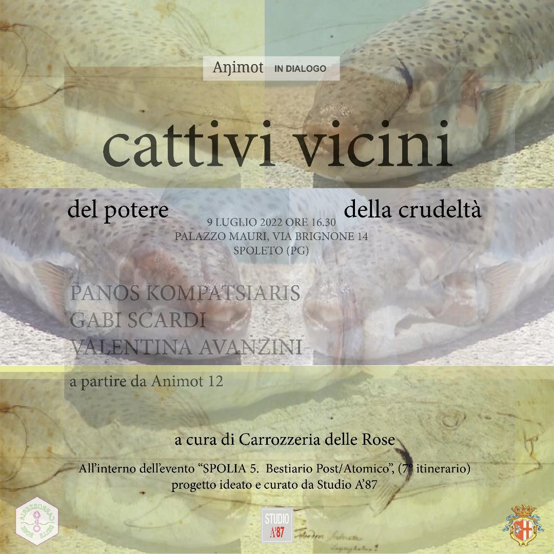 A partire da Animot 12 – Del potere, della crudeltà (a cura di Bruno Milone) le direttrici Gabi Scardi e Valentina Avanzini converseranno con il critico e scrittore Panos Komaptsiaris, interrogando i temi di Bestiario Post/Atomico 2022: “La vita contro la morte, una riflessione sull’attuale caotica condizione umana che indaga il rapporto tra umani, animali e ambiente nel corso dei secoli, creature post-atomiche, post-umane, ibride, contaminate.”