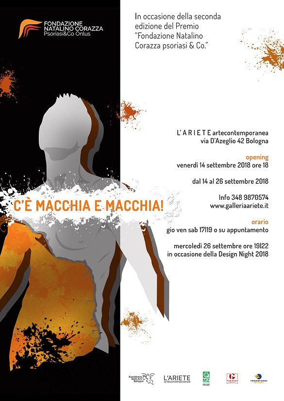 Premio “Fondazione Natalino Corazza Psoriasi&Co” II edizione “C’è macchia e macchia” a cura della Fondazione Natalino Corazza Onlus e Giovanni Bellavia in collaborazione con Accademia di Belle Arti di Bologna. Dal 15 al 26 settembre 2018|inaugurazione sabato 15 settembre ore 18|finissage con apertura straordinaria mercoledì 26 settembre ore 19>22 in occasione della Design Night 2018. In mostra le 13 opere selezionate fra gli oltre duecento progetti presentati dagli studenti dell'Accademia di Belle Arti di Bologna.