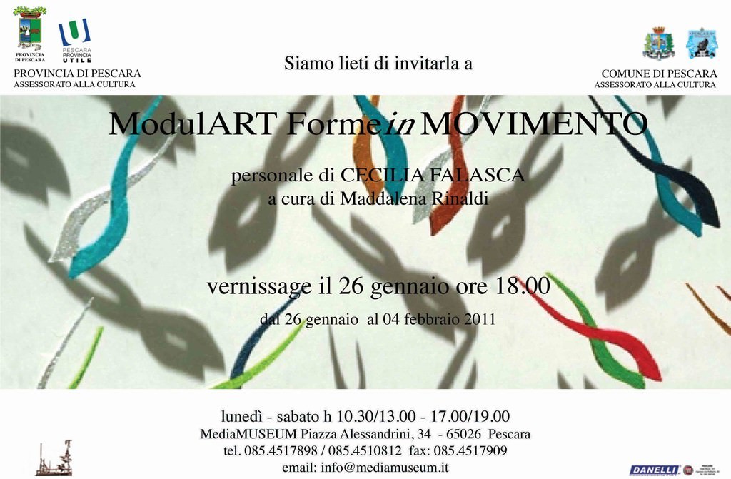 Mercoledì 26 gennaio alle ore 18:00 presso il MediaMuseum, in Piazza Alessandrini 34 a Pescara, si inaugura la mostra personale di Cecilia Falasca, ModulArt Forme in MOVIMENTO.