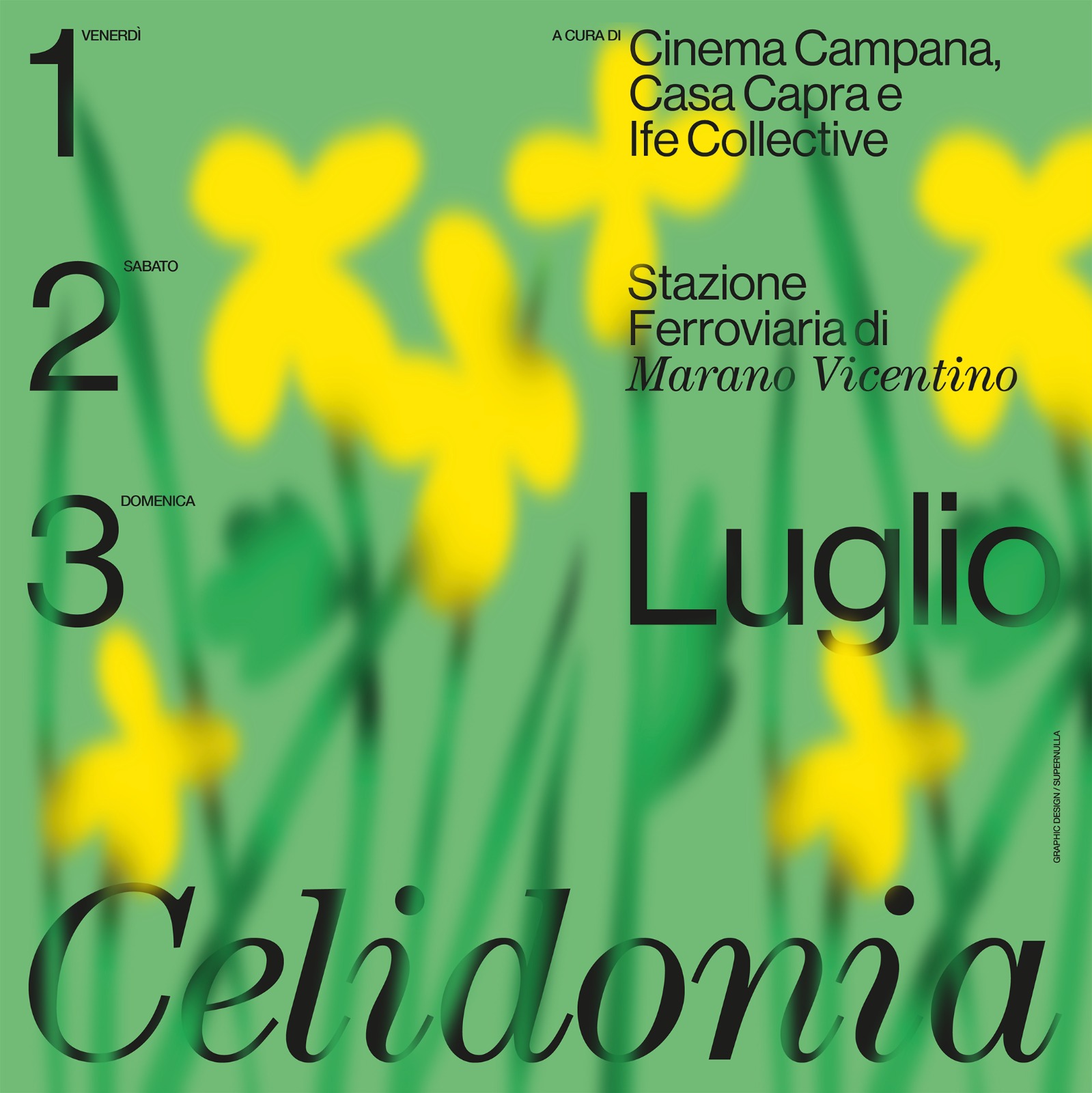 Celidonia è una rassegna di arte contemporanea, cinema e musica che verrà ospitata alla stazione di Marano Vicentino il primo week-end di luglio 2022, a cura di Cinema Campana, Casa Capra e Ife Collective e inserita nel progetto LoVe! Land of Venice, con la collaborazione di Cescot Veneto