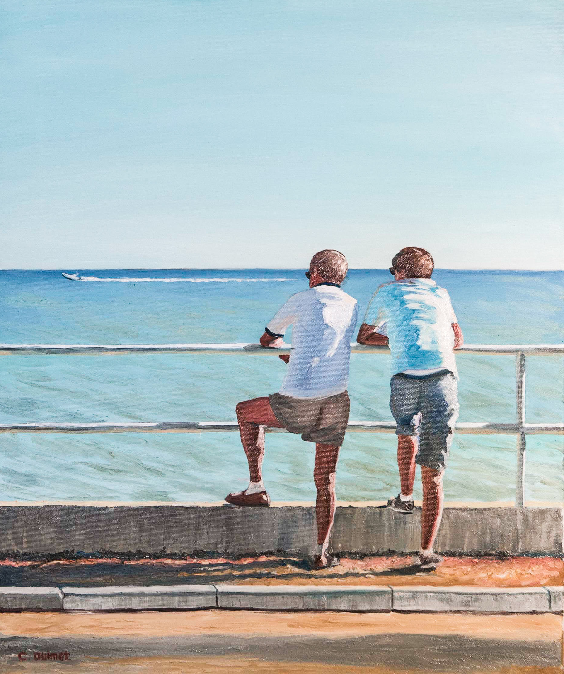Un approccio singolare, una ricerca costante, della bellezza percepita nella quotidianità, attraverso incontri, gesti, scambi e momenti di intimità catturati ai frequentatori di marine. Azioni, racconti, sensazioni e riflessioni di tutti i giorni, sono riportate su tela con essenzialità metafisica.