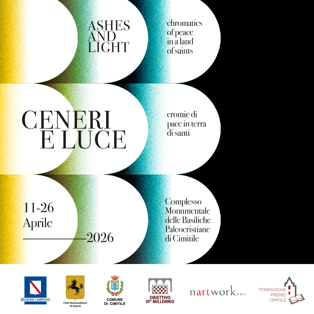 Dall’11 al 26 aprile 2026, presso il Complesso Monumentale delle Basiliche Paleocristiane di Cimitile, la collettiva internazionale “Ceneri e luce: cromie di pace in terra di santi” promossa dalla Fondazione Premio Cimitile e dal Comune di Cimitile, con il contributo di Regione Campania e Città Metropolitana di Napoli, curata da Nartwork asp.