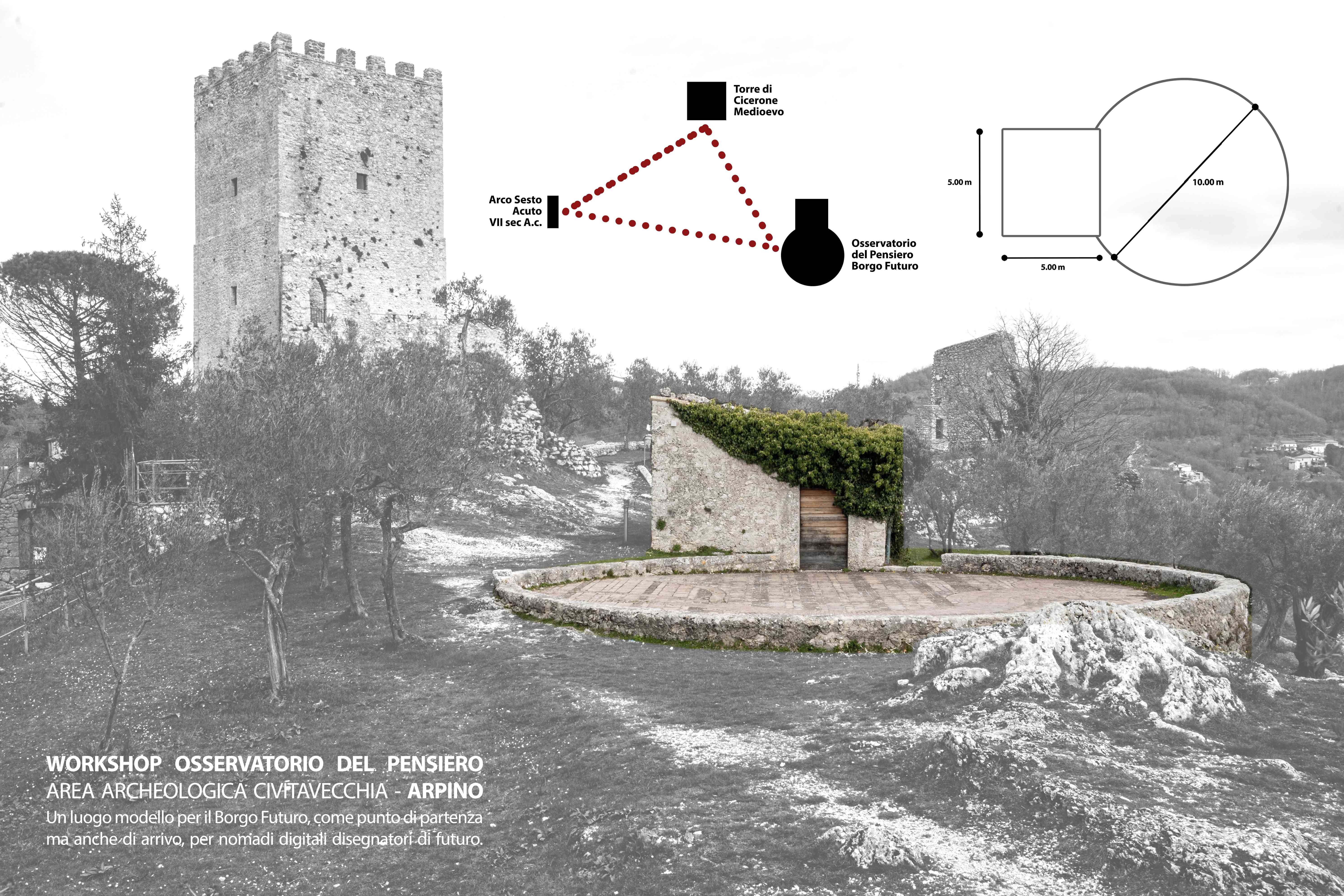 Con la collaborazione del Comitato Roma 150, partner del progetto, direttamente dalla Torre di Cicerone nel cuore della Civitavecchia di Arpino, sarà realizzata una Lectio Magistralis dedicata al Borgo Futuro nel pensiero classico con Franco Purini, l’evento sarà trasmesso on line in alta definizione.