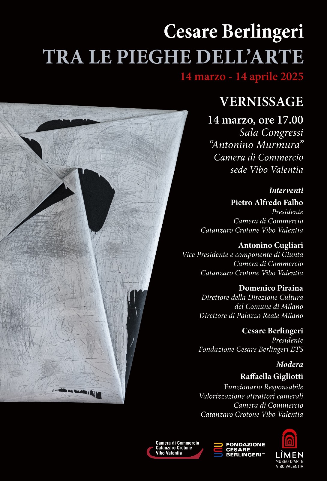 L’evento, organizzato dalla Camera di Commercio di Catanzaro Crotone Vibo Valentia insieme alla Fondazione Cesare Berlingeri, si colloca tra le azioni di valorizzazione del Museo Lìmen, che rilancia la sua mission con una mostra dell’autore dell’opera più prestigiosa del proprio patrimonio artistico
